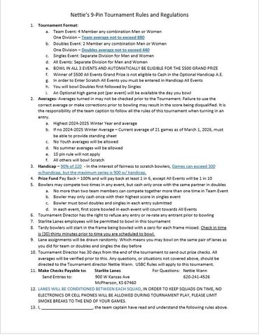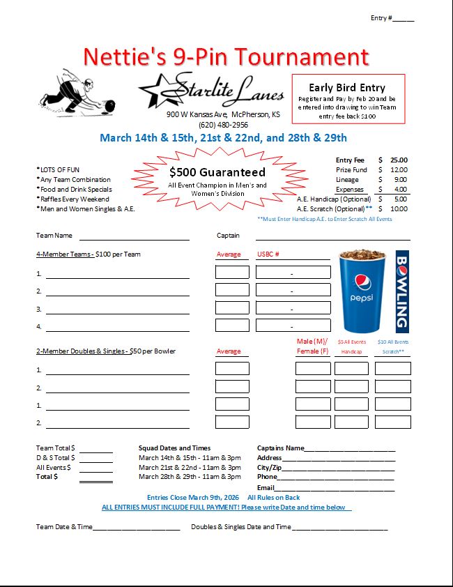 Starlite Lanes (620) 480-2956 5 Loaves Country Kitchen (620) 504-9979